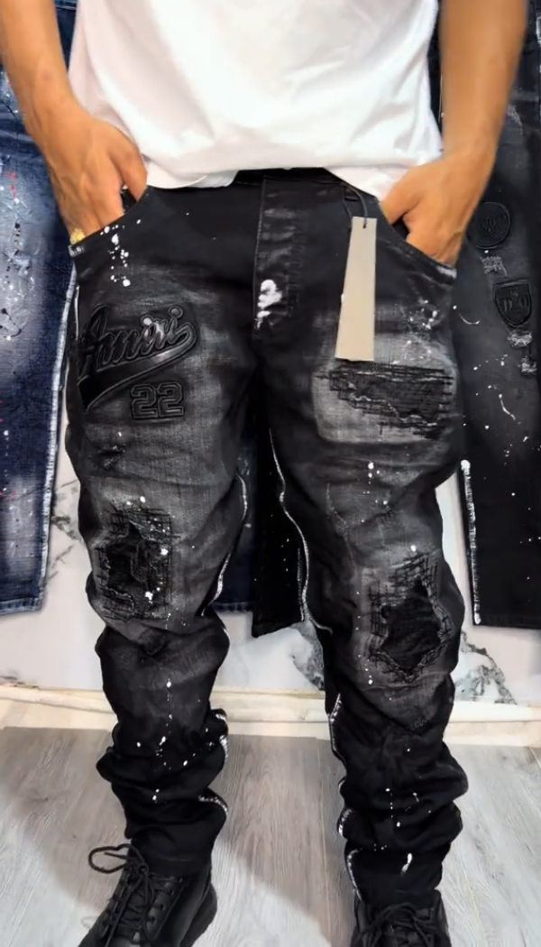 Letter Embroidery Ripped Casual Jeans