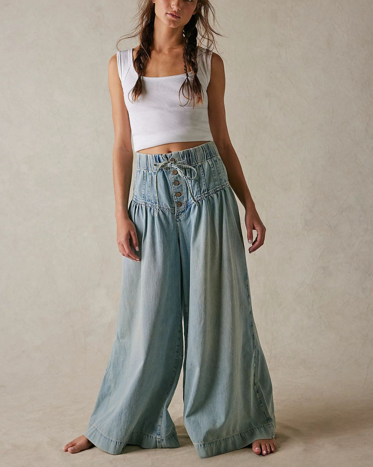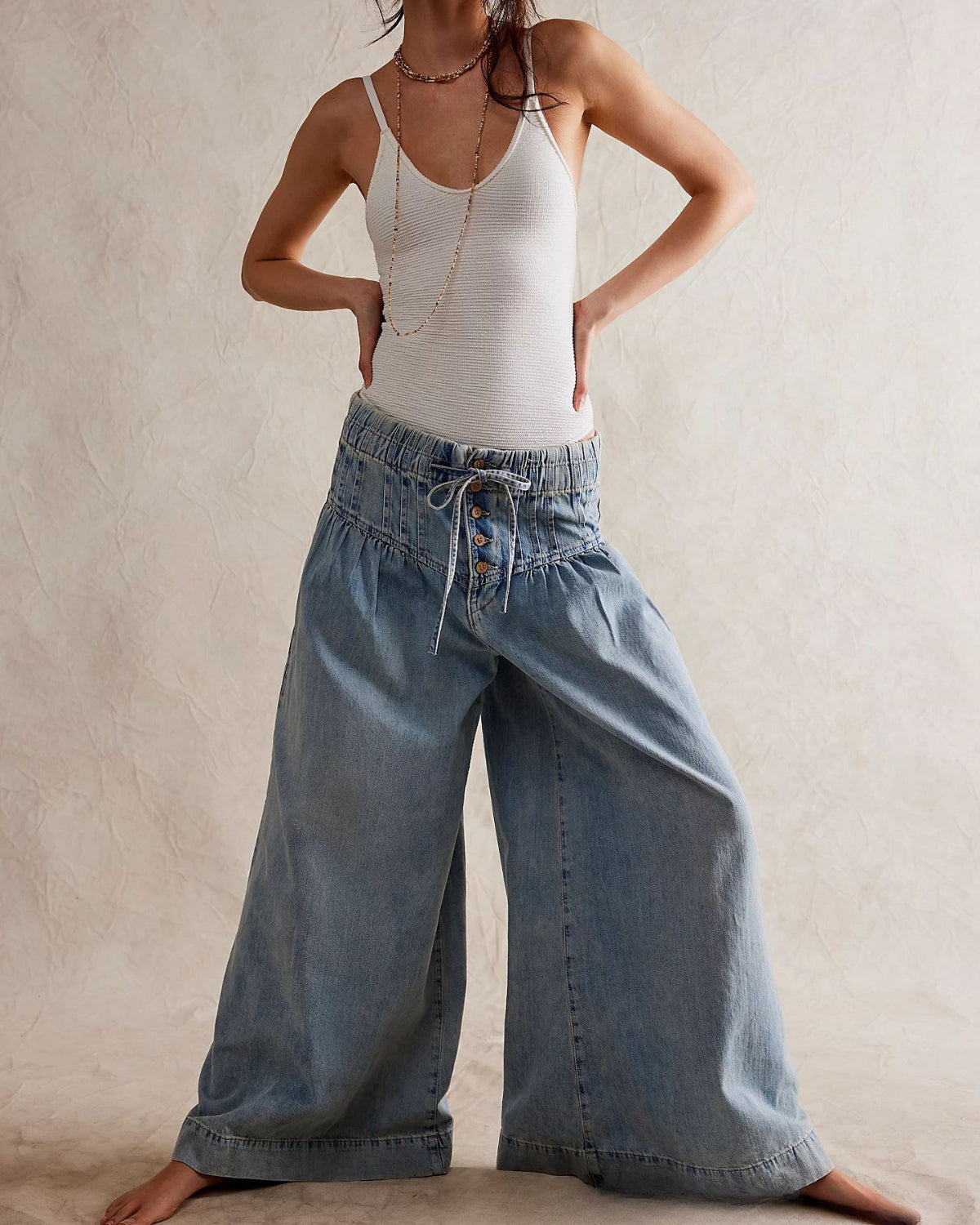 Pleated Wide Casual Jeans